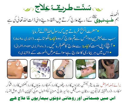 The Prophet (peace and blessings be upon him) said, "Cupping is the most helpful procedure for human beings to cure themselves." (Al Bukhari, 5357, and Muslim 1577)